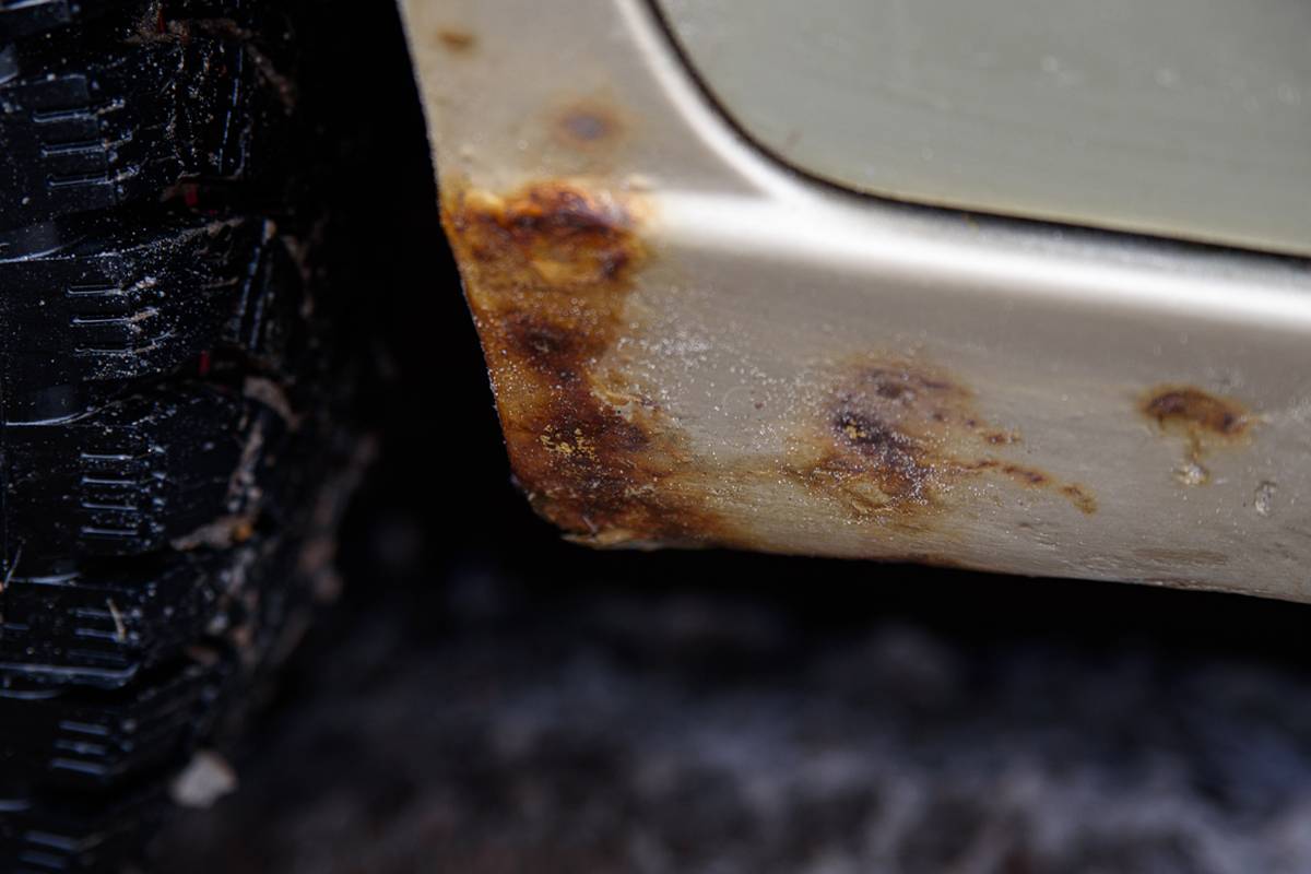 ตรวจสอบซุ้มล้อทั้งสี่ล้อ ใต้ท้องรถ ช่องระบายน้ำ รอยต่อของชิ้นส่วนต่าง ๆ ว่ามีรอยดินเลน รอยสนิมหรือรอยเชื่อมซ่อมแซมหรือไม่ สังเกตุสีรถสีรถอาจดูไม่สม่ำเสมอ หรือมีรอยด่างที่เกิดจากการซ่อมแซมหลังจากน้ำท่วม