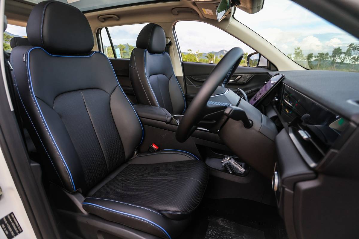 เบาะนั่งหุ้มวัสดุผ้าและหนังสังเคราะห์ให้เลือก โดยฝั่งคนขับปรับได้ 6 ทิศทาง และคนนั่ง 4 ทิศทาง โดยรุ่นท็อป Long Range MAX ปรับด้วยระบบไฟฟ้าคู่หน้า เพิ่มความสบายด้วยเบาะนั่งฝั่งคนขับและผู้โดยสารมีระบบอุ่นเบาะและเบาะเย็นให้ พร้อมพื้นที่ใช้สอยที่กว้างขวางและใช้งานได้จริงในชีวิตประจำวันโดยสามารถพับได้ในส่วนของเบาะหลัง 60:40 มีพื้นที่สัมภาระมากถึง 1,284 ลิตร และ 480 ลิตรในตอนไม่พับเบาะ และโทนสีภายในมี 2 สีทั้งสีเทาอ่อนคู่กับสีภายนอกรถสีดำและสีเทานม ส่วนภายในสีดำคู่กับสีภายนอกรถ ขาว/ดำ/เขียวอ่อน/น้ำเงินเข้ม