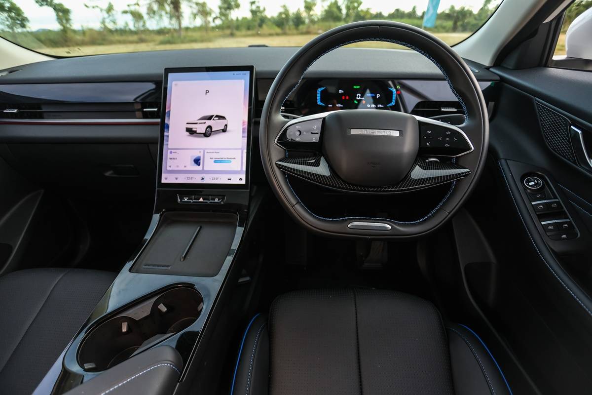 นำเสนอห้องโดยสารเน้นความโมเดิร์นและเทคโนโลยีล้ำสมัย โฉบเฉี่ยว แม้ได้มรดกการดีไซน์มาจาก RANGE ROVER EVOQUE ทั้งคอนโซลกลางที่ยกสูงและพวงมาลัยมัลติฟังก์ชันดีไซน์เก๋ จุดขายสำคัญคือหน้าจอสัมผัสแนวตั้งขนาดใหญ่ 9 นิ้วในรุ่น Long Range Dynamic และขนาด 13.2 นิ้ว ในรุ่น Long Range MAX รองรับ Apple Car Play และ Android Auto ควบคุมฟังก์ชันส่วนใหญ่ของรถ พร้อมระบบเสียง 2 ลำโพงในรุ่น Long Range Dynamic กับมากสุด 8 ลำโพง ในรุ่น Long Range MAX มีหน้าปัดดิจิทัลเต็มรูปแบบขนาด 10.25 นิ้ว ให้ความรู้สึกเหมือนอยู่ในรถยนต์แห่งอนาคต