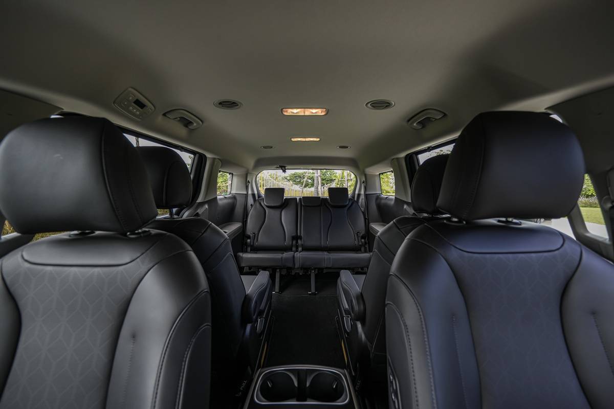 องค์ประกอบเด่นที่ครองใจครอบครัวนั่นคือห้องโดยสาร 7 ที่นั่งแบบ 2-2-3 เบาะนั่งคู่หน้าปรับไฟฟ้า เบาะนั่งแถว 2 เป็นเบาะแบบ Captain Seats ที่สามารถถอดออกได้เพื่อเพิ่มความอเนกประสงค์ในการใช้งาน และยังสามารถปรับเปลี่ยนตำแหน่งให้เป็นแบบนั่งหันหน้าเข้าหากันได้ถึง 180 องศา ให้สมาชิกในครอบครัวได้มีปฏิสัมพันธ์กันได้ตลอดทริป พร้อมโทนสีดำหุ้มหนังสังเคราะห์