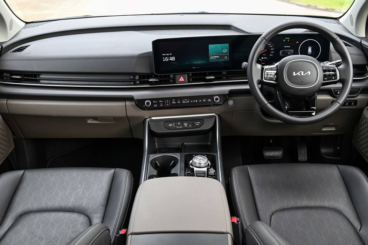 เห็นได้ชัดที่คอนโซลกลางได้รับการปรับปรุงให้ดูเรียบง่ายขึ้นโดยการลดจำนวนปุ่มการใช้งานฟังก์ชันต่างๆลง มีแผงสัมผัสแบบเดียวกับระบบควบคุมสภาพอากาศเหมือนกับ KIA รุ่นอื่นๆ เช่น Sportage, Niro และ Sorento บนแผงหน้าปัดและการ์ดประตูหน้า รองรับการอัปเดตแบบ over-the-air ที่ดีขึ้นจอคู่ทั้งมาตรวัดดิจิทัลดีไซน์ใหม่ ขนาด 12.3 นิ้ว และจอสัมผัสความบันเทิงขนาด 12.3 นิ้วมีระบบเชื่อมต่อ Android Auto™ และ Apple CarPlay® แบบไร้สายและฟังก์ชันสั่งงานด้วยเสียง