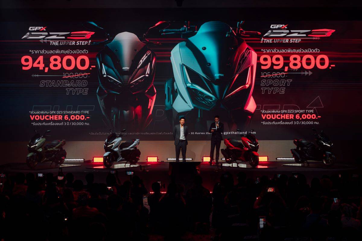 มาร์เก็ตติ้ง จำกัด กล่าวในงานเปิดตัวสุดยิ่งใหญ่ที่จัดขึ้นเมื่อวันที่ 25 กรกฎาคม 2567 ณ โรงแรมพูลแมน คิง เพาเวอร์ กรุงเทพ (รางน้ำ) ว่า “DZ3 คือการอัพเกรดในทุกมิติ สู่ยุคใหม่ของ GPX กับการพัฒนาที่ดียิ่งขึ้นกว่าที่เคยมีมา สะท้อนความมุ่งมั่นในการพัฒนาของ GPX เพื่อให้ผู้ขับขี่ได้รับประสบการณ์ใหม่และพร้อมสำหรับการเติบโตอีกสเตป กับการขยายสู่ตลาดในต่างประเทศต่อไป”
