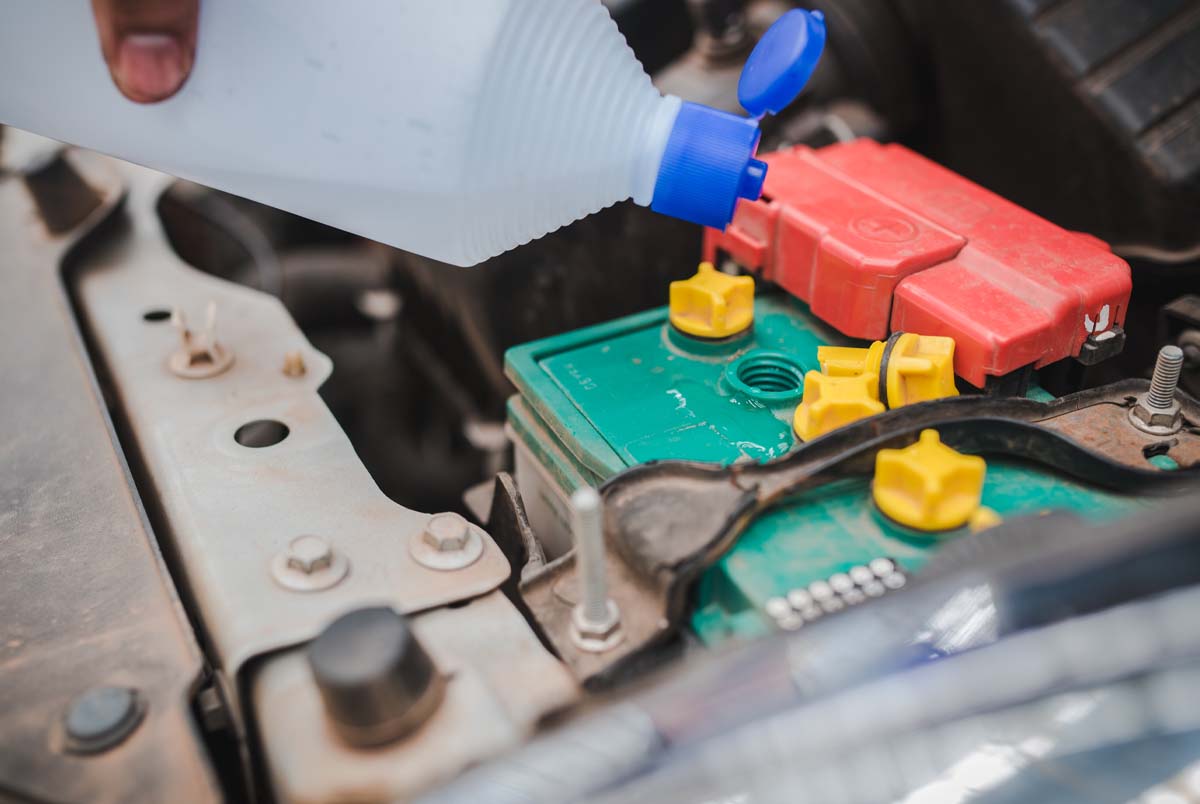 สำหรับแบตเตอรี่แบบเติมน้ำกลั่น ควรตรวจสอบระดับน้ำกลั่นในเซลล์แบตเตอรี่เป็นประจำ หากน้ำกลั่นต่ำกว่าระดับที่กำหนด ควรเติมน้ำกลั่นให้ถึงระดับ