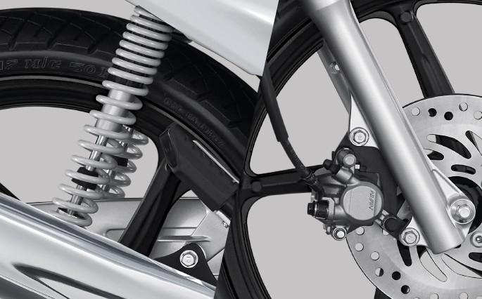 ด้านช่วงล่างรองรับแรงสั่นสะเทือนโช้คอัพด้านหน้าเทเลสโคปิค และโช้คอัพหลังเดี่ยว ส่วนระบบเบรกเป็นดิสก์เบรกเดี่ยว ปั้มเบรก 1 พอต ที่ด้านหน้า และด้านหลังเป็นดรัมเบรก พร้อมด้วยวงล้อขนาด 17 นิ้ว รัดด้วยยางหน้าขนาด 70/90-17 และหลังขนาด 80/90-17 นอกจากนี้ส่วนของฟีเจอร์ใช้งาน เพิ่มความสะดวกสบายให้การขับขี่ด้วยช่องเก็บของอเนกประสงค์ด้านหน้า และช่องเก็บของใต้เบาะขนาดความจุ 17 ลิตร สามารถใส่หมวกกันน็อกได้แบบเต็มใบได้อีกด้วย