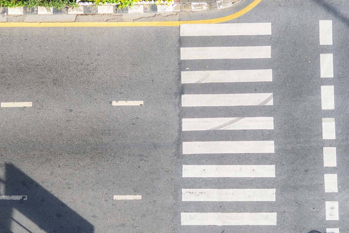 - เส้นทางข้ามหรือทางม้าลาย มีลักษณะเป็น เส้นประสีขาวกว้างและยาว หลายแถบวางเรียงกัน ในแนวขวางเส้นทางเดินรถ เมื่อพบเจอเส้นจราจรนี้ จะต้องขับขี่ยานพาหนะให้ช้าลง และพร้อมหยุดรถทันที เมื่อเห็นคนเดินทางข้ามเส้นดังกล่าว ผู้ขับขี่ต้องหยุดรถก่อนถึงแนวเส้น เมื่อคนเดินข้ามพ้นจากถนนแล้วจึงเคลื่อนรถต่อได้