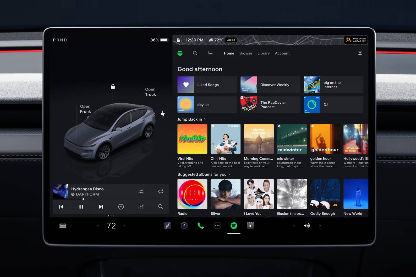 โดดเด่นด้วยหน้าจอสัมผัสกลางขนาดใหญ่ขึ้น 15.4 นิ้วจากเดิม 15 นิ้วที่ทำหน้าที่ควบคุมการทำงานของตัวรถทั้งคันไว้ในจอเดียวเป็นทั้งระบบความบันเทิง การนำทาง และเครื่องปรับอากาศ รองรับการอัปเดตซอฟต์แวร์อัตโนมัติ Over-the-air ผ่านทางดาวเทียมจะคอยอัปเกรดฟังก์ชันคุณสมบัติ การทำงานต่างๆ และประสิทธิภาพใหม่ตลอดเวลา เพิ่มจอหลังขนาด 8 นิ้วรองรับความสบายของผู้โดยสารตอนหลัง
